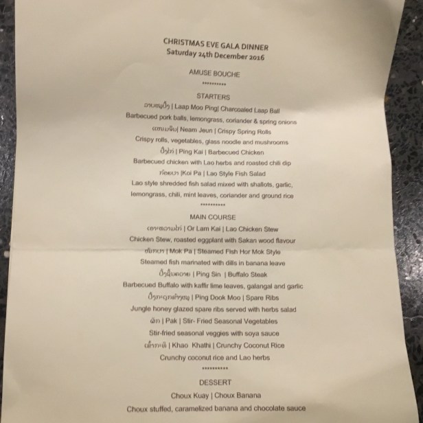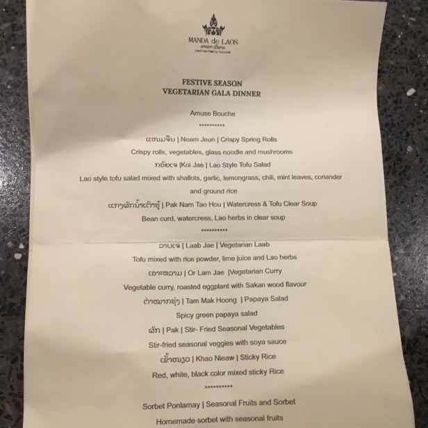 We went to the Manda de Laos restaurant for their Christmas menu. We had been there the night before but we had only had a small snack so we wanted the full experience. Please find the regular and the vegetarian menu below. I must say that the vegetarian one was, in fact, vegan and extremely fond of tofu. That’s not to say I didn’t like it, but it sure had a lot of tofu. Andreas liked his menu, it was flavorful and well-rounded.